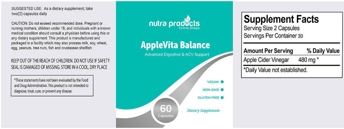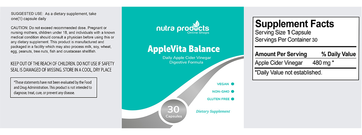 AppleVita Balance – Daily Apple Cider Vinegar Digestive Formula (30 Capsules – 1/day)